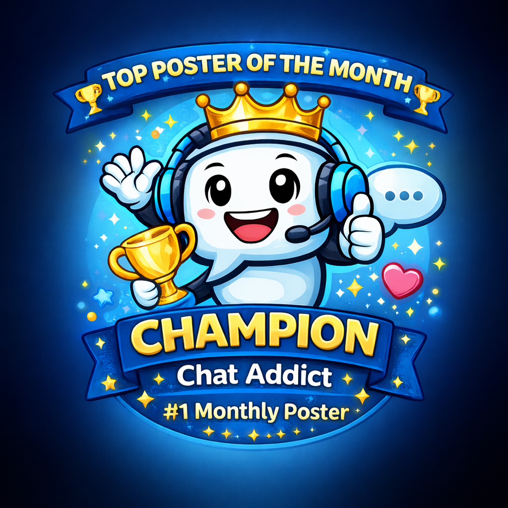 This badge is awarded when you make your 2500th post on Chat Addicts!